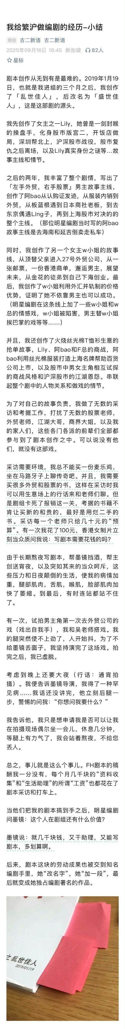 這件事情最早的時候是因為《繁花》的前編劇古二被逼得沒有辦法,才站出來說的。