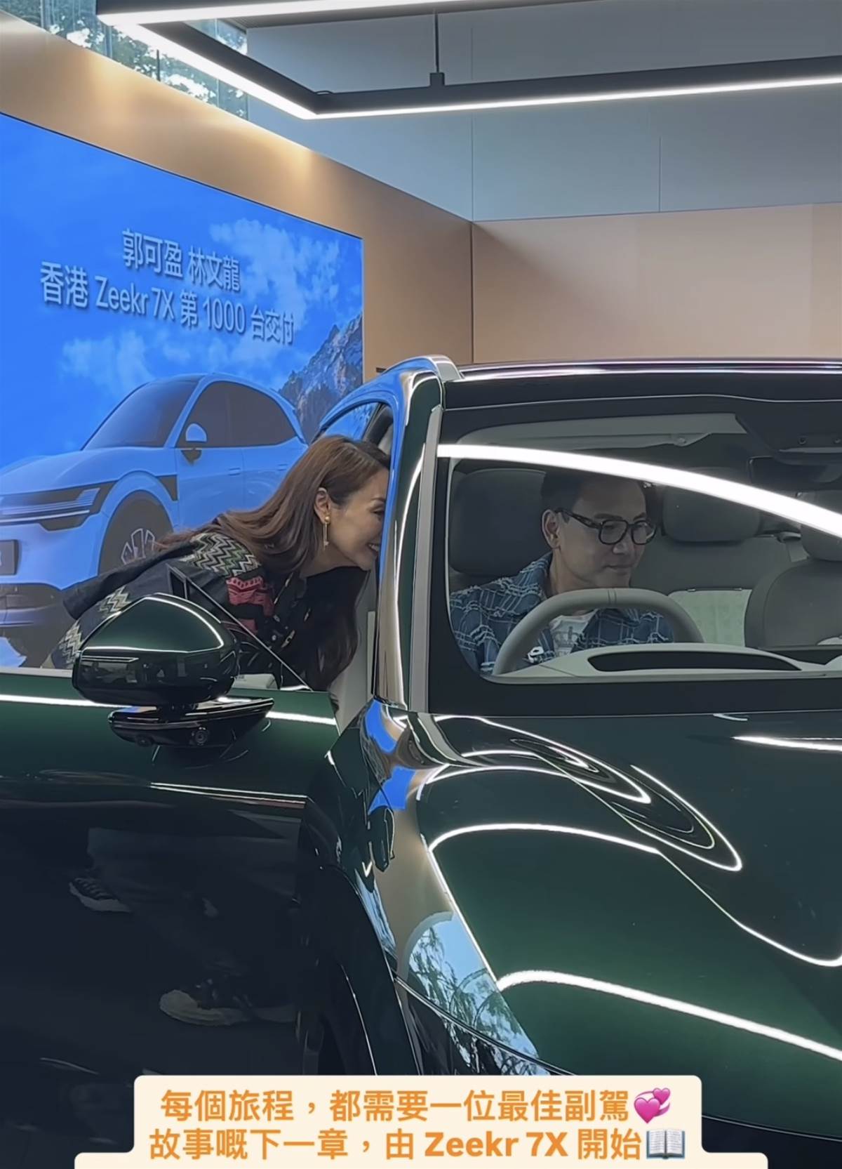 在接手了鑰匙之后,郭可盈夫婦還當場試駕新車,從照片來看,夫妻倆選的是一輛軍綠色的車。林文龍親自上座駕感受,郭可盈在車外看著丈夫在車內操作,一臉幸福。之后郭可盈還去看了車尾箱,最終夫妻倆站在新車的旁邊合照。郭可盈夫婦似乎對新車很有興趣,不知道是不是第一次近距離接觸,不過就算是也沒關系。