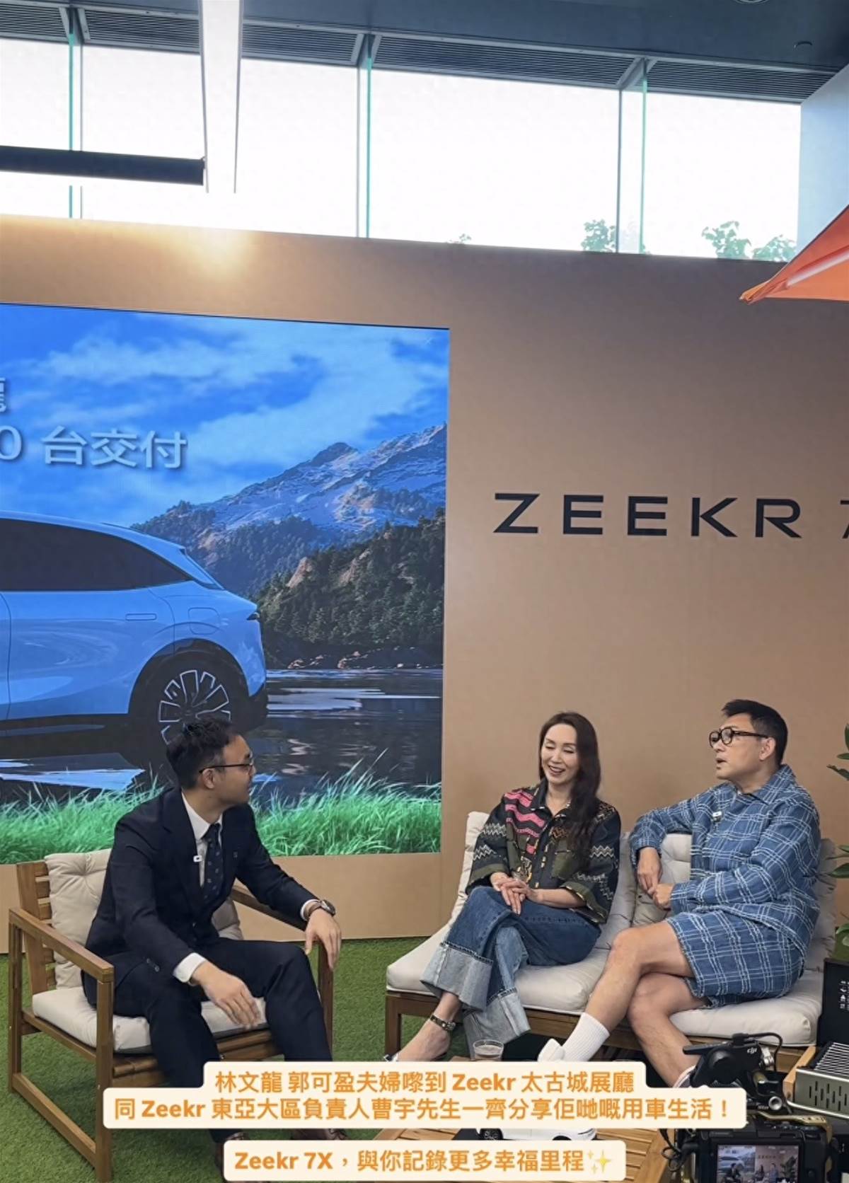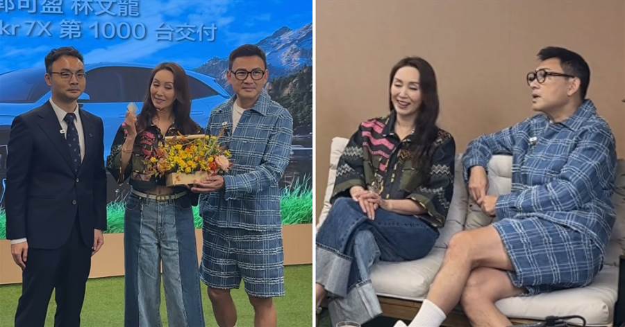 郭可盈與丈夫去提車,還特地盛裝打扮了一番,頗有儀式感。當天郭可盈的打扮就是典型的貴婦裝,沒有很夸張,穿了闊腿牛仔褲,上身是大花新中式上衣,一頭長發自然灑落,55歲狀態依然完美。而林文龍一身藍色格子套裝,上身是格紋長袖,下身是格紋短褲,還穿了白色的球鞋,白色的球襪,戴上了眼鏡,這一身打扮顯得斯文、時尚,仿若在出席公開活動一般。由于是名人買車,品牌方自然不會錯過這個宣傳的機會,夫妻倆到了太古城展廳的時候,獲得了品牌東亞大區負責人曹宇先生的親自接待。