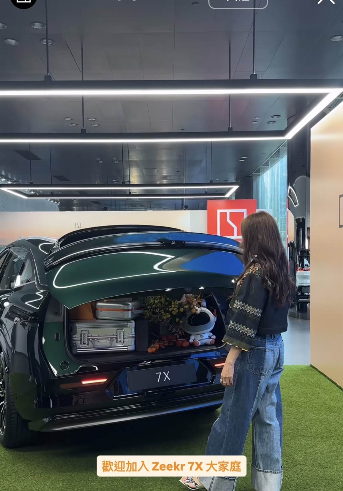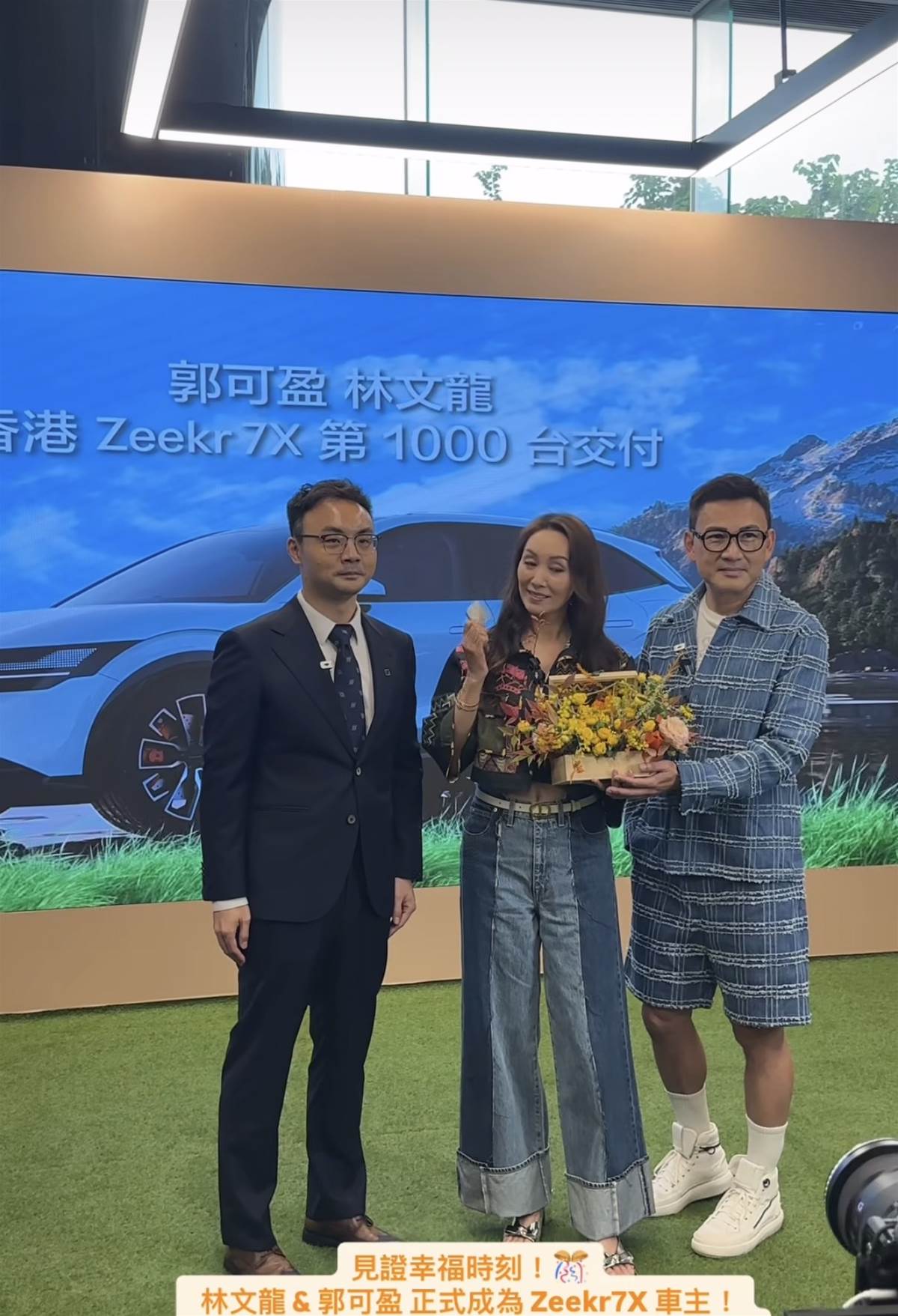 在正式提前車之前,郭可盈夫婦還在展廳與負責人親切交流,分享夫妻倆日常生活的用車生活,以及開車習慣。曹宇說的是普通話,夫妻倆也很配合地以普通話進行交流,雙方談得很開心,也很暢快。在一番交談之后,就是交付車鑰匙的時間。郭可盈夫婦所買的是品牌中的7X SUV,在拿到車鑰匙的時候,現場還專門送了一個花籃給郭可盈夫婦。此時在展廳的大熒幕上還寫了郭可盈、林文龍的名字,下方寫上的是香港 7X第1000台交付,也就是說夫妻倆買的是這個品牌這個系列的第1000輛車。