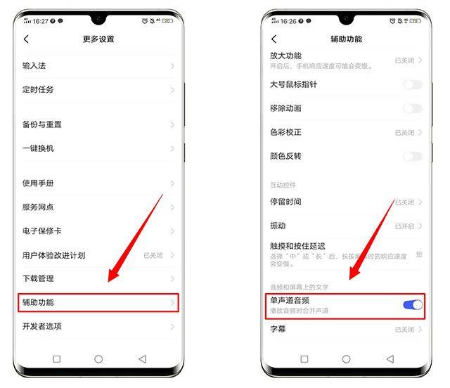 再來說安卓手機,如果發生同樣的情況,我們也可以在設置里找到更多設置選項,選擇輔助功能進入,接著開啟單聲道音頻功能,這樣的話,也是能夠提高通話是的音量和清晰度的,不過安卓手機機型很雜,步驟可能不一樣,不過還是差不了多少的,真的找不到還可以在設置里面打開搜索框搜索!