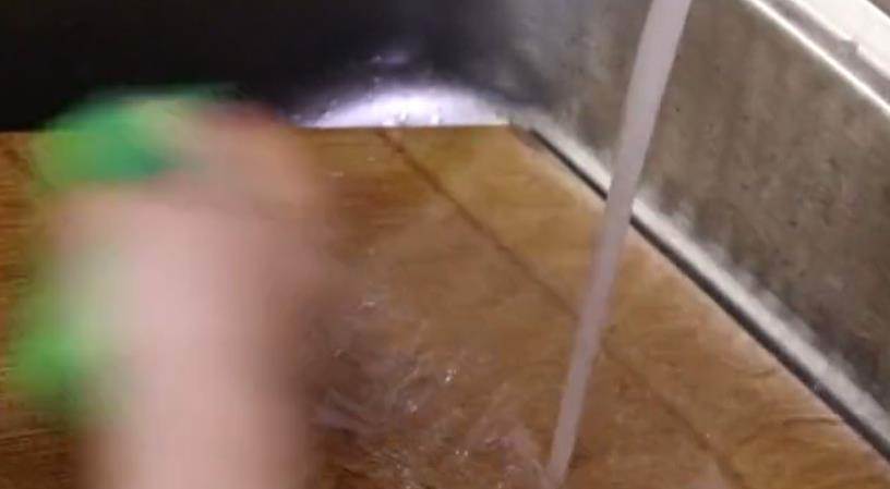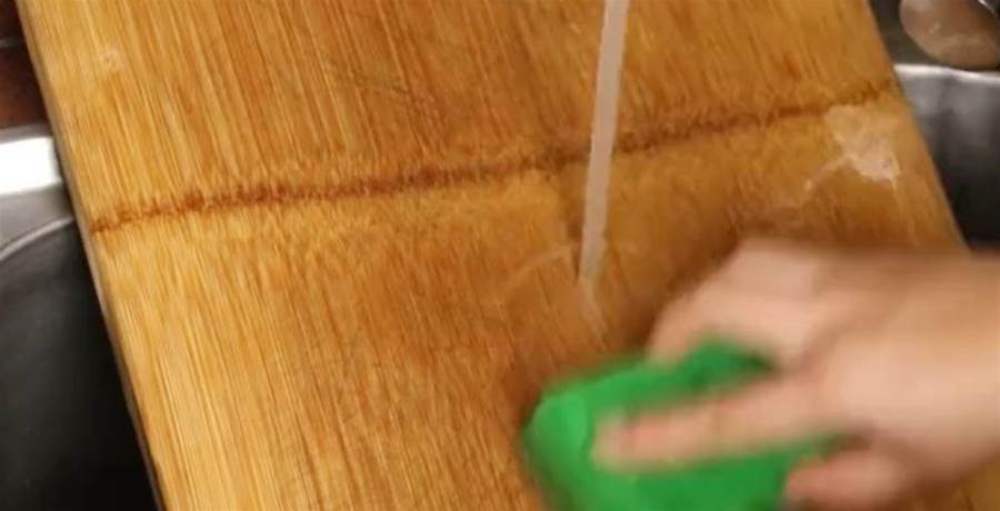 4. 將菜板沖洗干凈,確保表面無殘留物。然后反面也沖洗干凈。