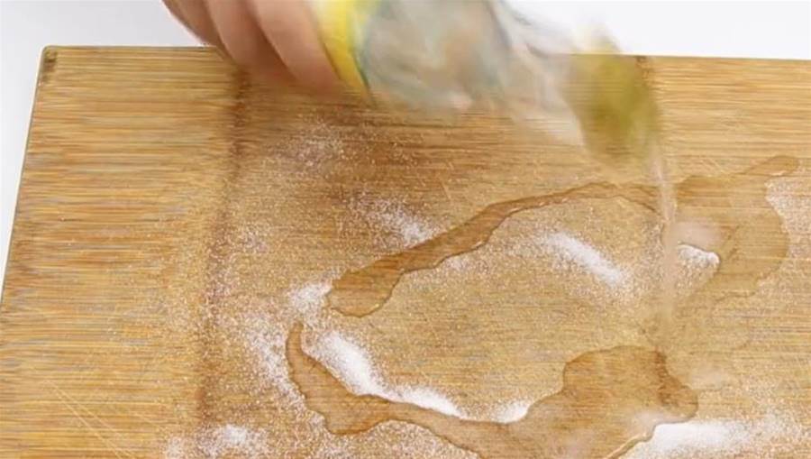 1. 在菜板上撒上適量的食鹽,鹽具有殺菌的作用,同時還能幫助去除菜板上的污漬。