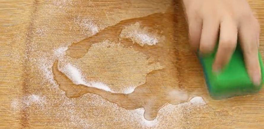 3. 使用百潔布輕輕刷洗菜板表面,特別是刀痕和污漬較多的地方。刷洗時要小心不要劃傷菜板。