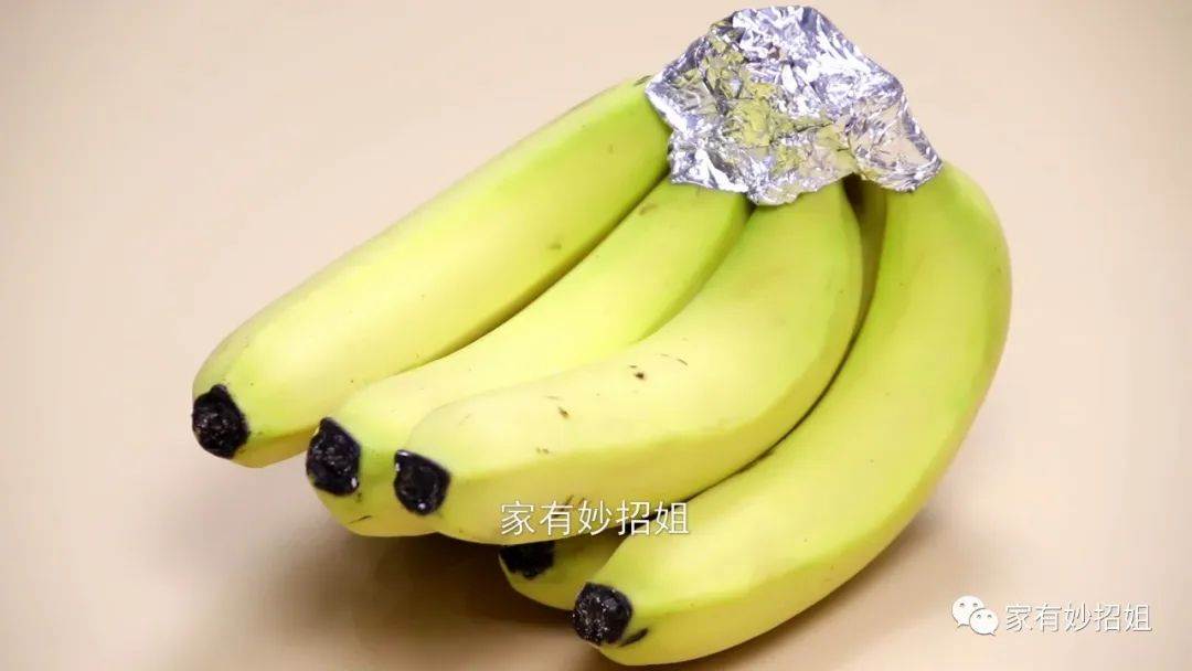 香蕉是我們平時經常都會買著吃的一種水果,要是香蕉買多了沒吃完的話,就特別容易發生腐爛的情況。其實想要香蕉存放的時間更長,我們就可以利用上錫箔紙。在香蕉的表面一般都會有殘留的催熟劑,我們先把香蕉用清水沖洗一下,然后再用紙巾將表面的水分擦干。接著我們再拿塊錫箔紙將香蕉的根部包裹起來。這一步的目的,是可以阻止香蕉根部的乙烯氣體釋放,而乙烯氣體就是香蕉本身的催熟劑,我們將它包裹住阻止它釋放,就能有效的延長香蕉的成熟和腐爛了。