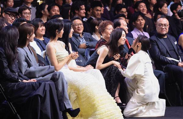另戲劇類驚喜更是不斷,潘迎紫白色性感禮服登場氣場全開,與當年的戲劇神獸嗶波跟哎呀呀靈芝草人同台,完全回憶殺重現,大家都驚呼保養得太過頭,深藏不露!原來身材那麼火辣。網友留言「讓人看到『專業』兩個字最深的樣子:不是短暫的天賦,而是一輩子的自律與堅持。」而被稱為「世敵」的楊謹華與柯佳嬿同台頒獎更是典禮一大賣點,兩人在台上女女吻,除打破外界對「不和」傳言外,連今年視帝連炳發在台大都摀著嘴驚喜大笑。