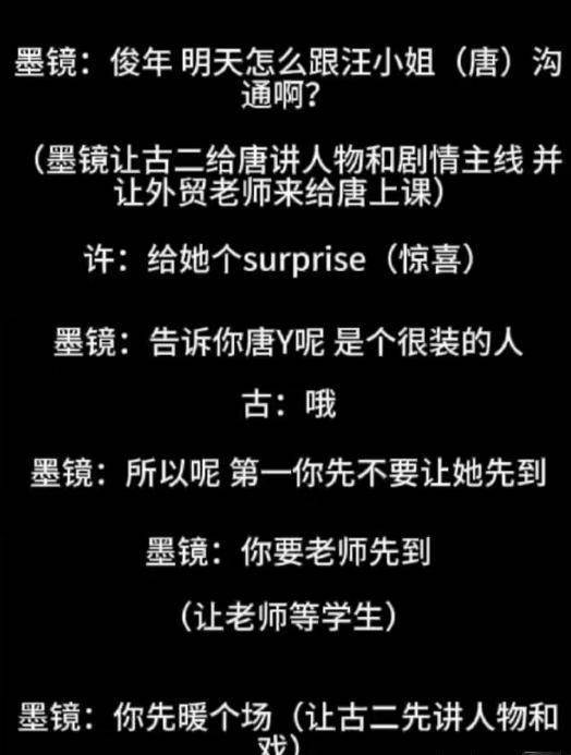 一方覺得王導就是暗諷唐女士行事做作,另一方面則覺得導演只是想打破常規激發她的狀態。