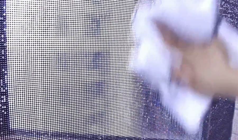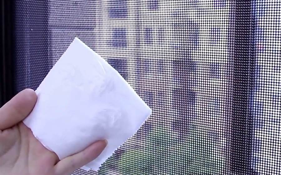 靜置兩分鐘過后,準備毛巾輕輕一擦,大家可以看到污垢輕松擦下來,效果非常不錯。接下來,我們將它全部擦拭干凈哦,接下來,我們準備一條干毛巾,將紗窗上的水分給它擦干,擦干之后給大家看一下最后的效果。全部清潔完之后,接下來我們直接準備紙巾測試一下,大家可以看到紙巾擦上去都非常的干凈,紗窗清潔得非常干凈,使用起來更加健康衛生哦。