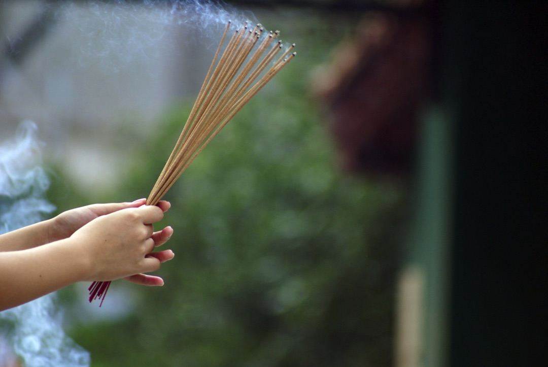 在持香時左手一定要在前面,右手在后面,這是因為平時我們不論是切菜剁肉基本都是使用右手,所以右手是被認為是充滿殺戮的。因此,燒香的時候用左手擋住右手的殺戮才更顯得真誠,另外,當香火被點烯后,不要用嘴直接將其吹滅。