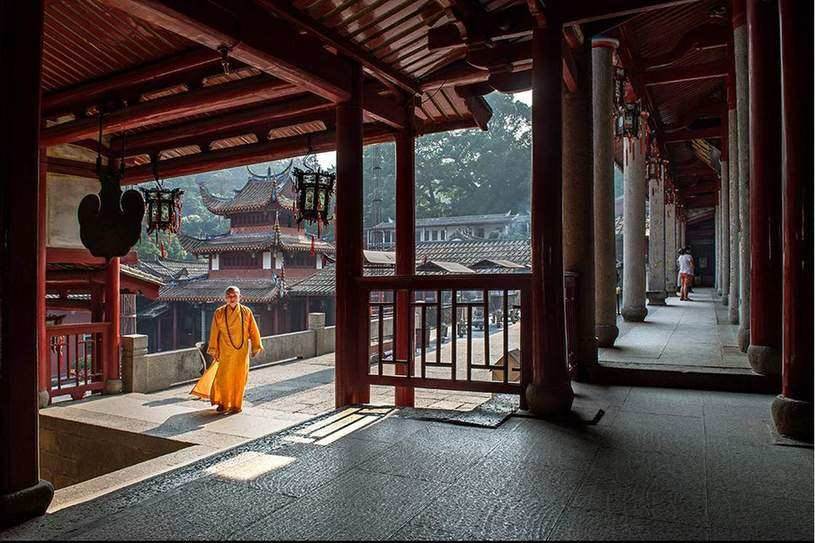 通常寺廟的殿堂有兩個或三個門,其中一個中間的大寬門是給佛教弟子的專有通道,而去燒香拜佛的香客則是走旁邊的小門進入。另外,進殿也有男左女右的說法,即男性要先邁左腳,而女性則要先邁右腳。