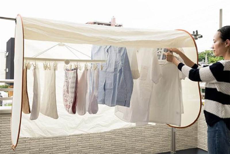 將衣服晾曬在薄膜內側,這樣從外面看的話,