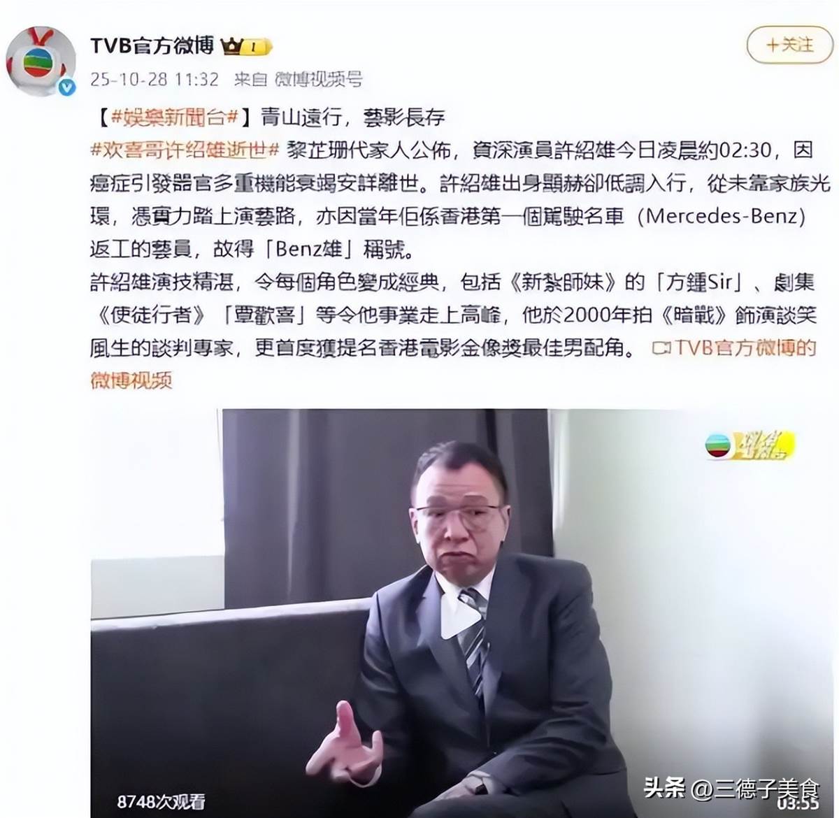 而當TVB官方微博,發出「「歡喜哥」許紹雄去世」的消息之后,大家才明白,這不是謠言,而是現實。