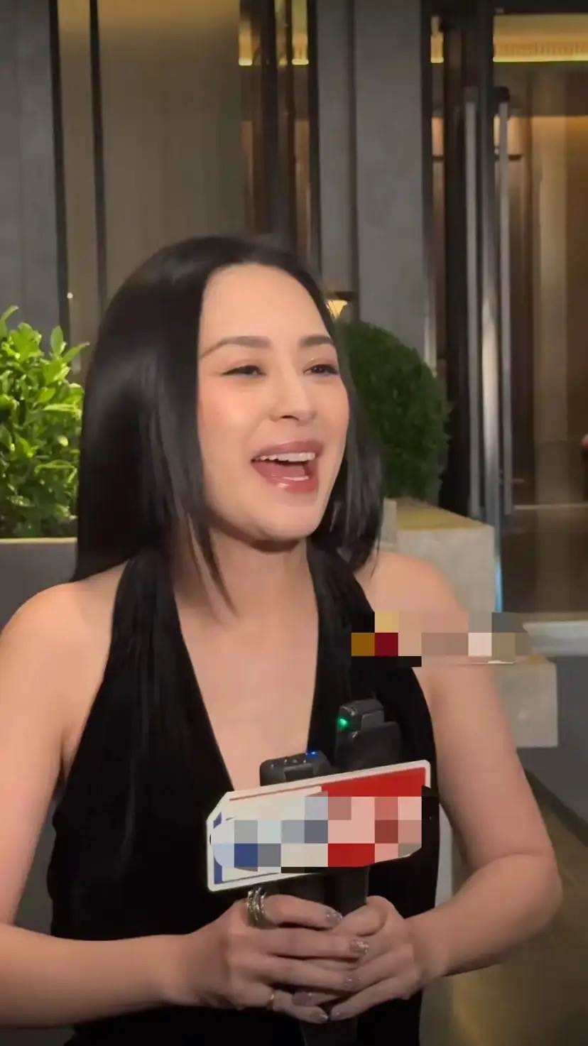 最讓人關注的就是阿嬌了。44歲阿嬌穿了一條掛脖款的黑色連衣裙,留著披肩的長發,有一種氣血充足的美。