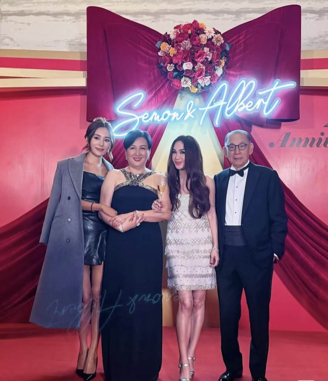 這一次阿嬌回香港,是為了慶祝老闆楊受成40周年的結婚紀念日。英皇老闆慶祝紅寶石婚,旗下的藝人大部分都來了,除此之外劉鑾雄、向太夫婦也罕見露面。