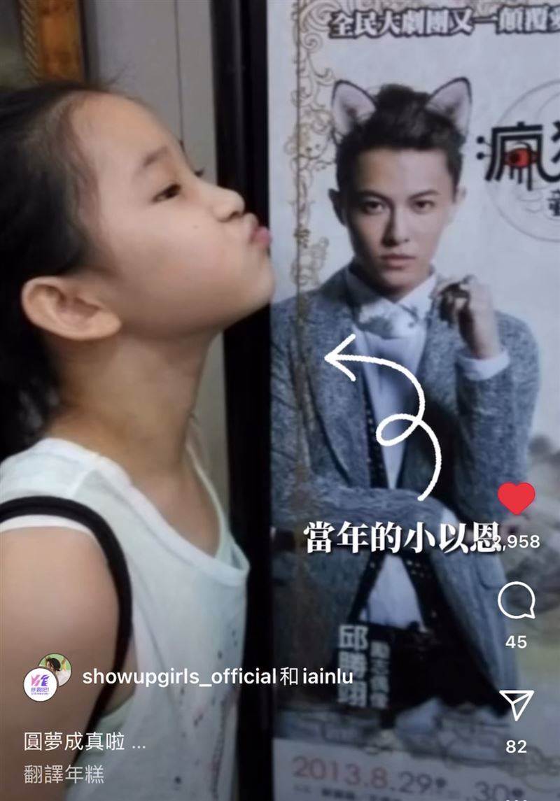 ▲盧以恩小時候和海報上的王子搞笑互動。(圖/翻攝自《炸裂吧!女孩》IG)