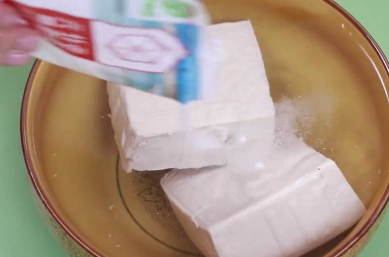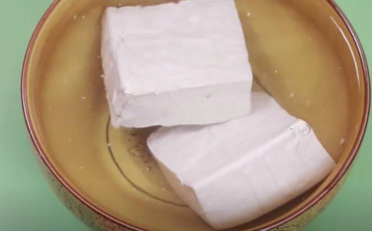 接下來準備一盆涼白開,然后將豆腐給它放進去,涼白開是開水燒開后放涼的,里面沒有細菌。
