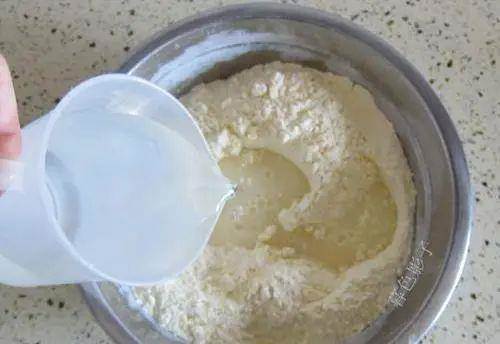 首先,我們準備水杯調制揉面時用到的溶液,在里面放入適量的小蘇打,小蘇打可以代替酵母粉,而且也可以加快發面的速度。