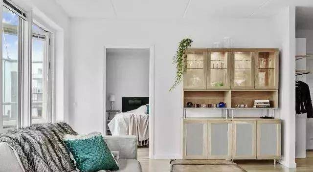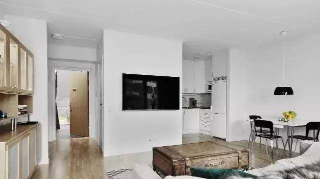 正面就能看到玄關,但就是中間的小衣帽間成了電視墻,而且還避免了泄露隱私的尷尬,這樣的設計想法我還是支持的。