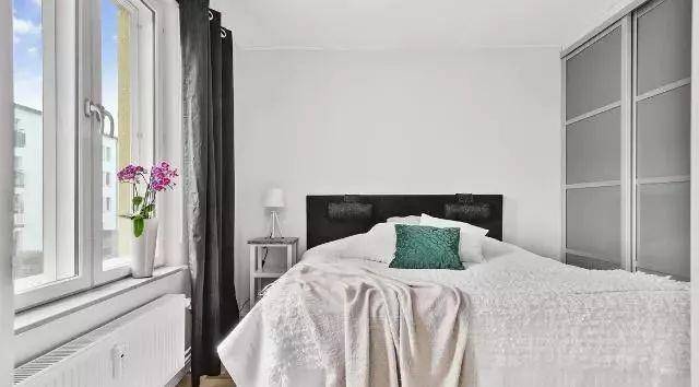 半人高的大床,白灰色的裝飾,有點冰冷冷的,我一著急就跑到小區門口買了幾枝花插在窗台上,希望能帶來一點溫暖,旁邊一大排的衣柜,為了改變房子小的錯覺,特意裝的磨砂玻璃,還挺有效果的。