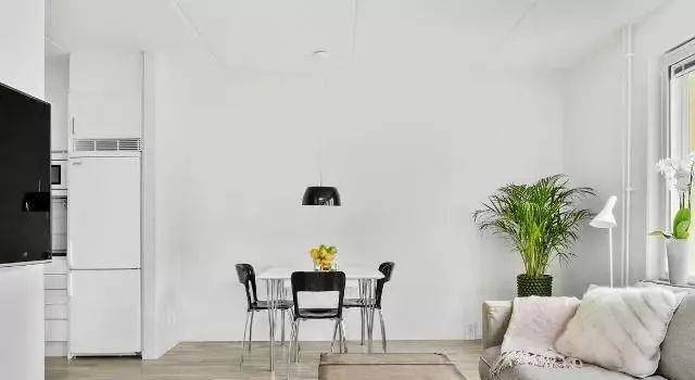 廚房外面的餐廳,孤單單的餐桌椅,黑白的時尚搭配,一點兒也沒有女孩子家的溫柔,到是多了一份職場上的沖勁。