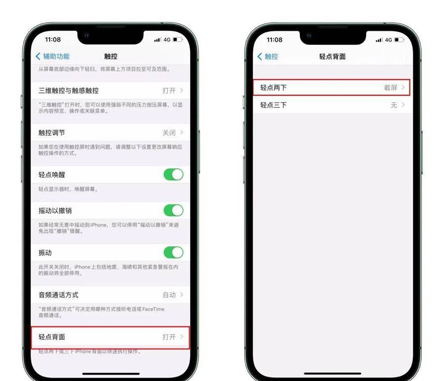 如果你的iPhone升級到了iOS14及以上版本,那麼輕點背面兩下就能截圖。打開iPhone【設置】-【觸控】-【輕點背面】-【輕點兩下】,將這個指令設為截屏。