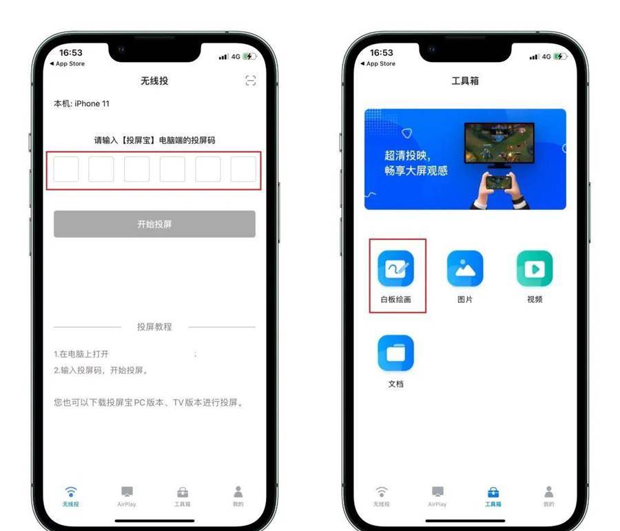 在iPhone手機上打開【投屏寶】,就可以將手機投屏到電腦,輸入電腦端的投屏碼就能連接,畫質、分辨率都可以自由調節,投屏過程中還能使用白板繪畫工具。