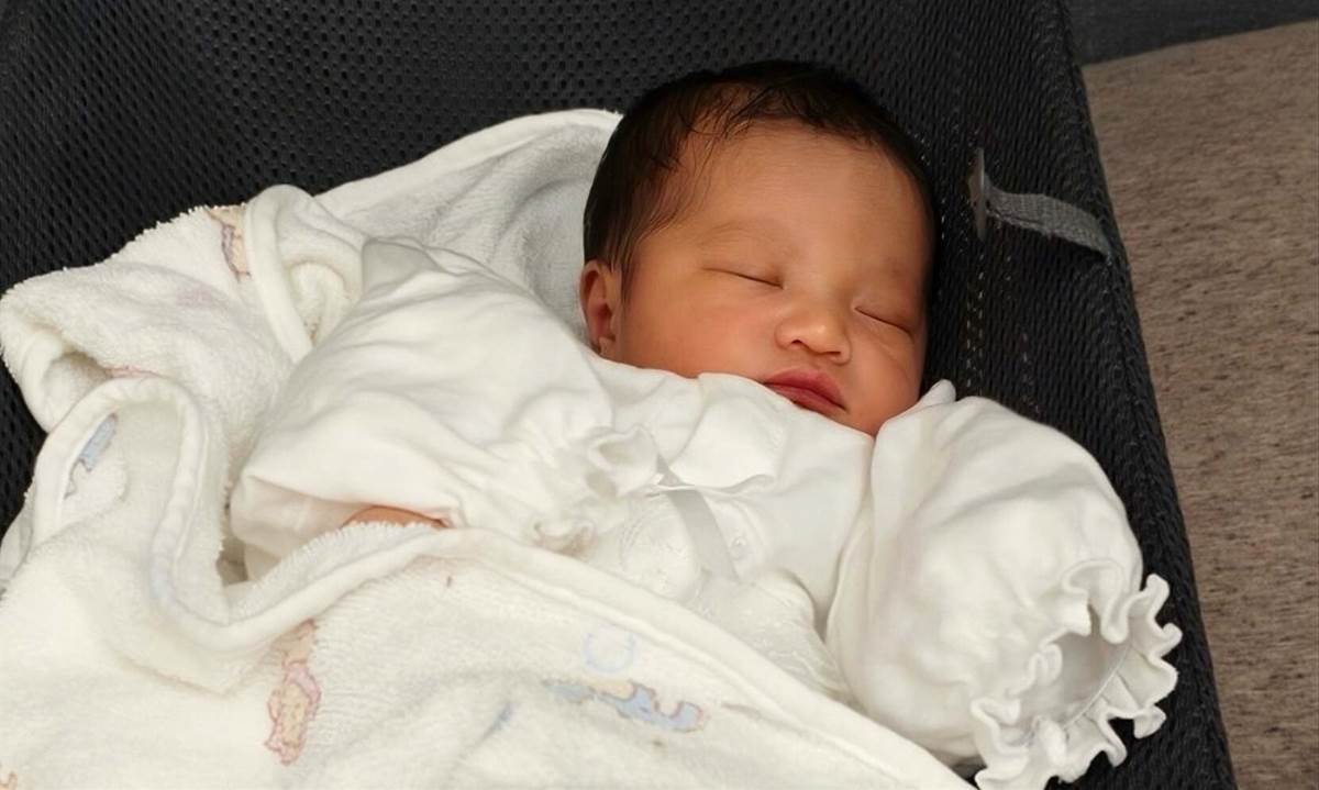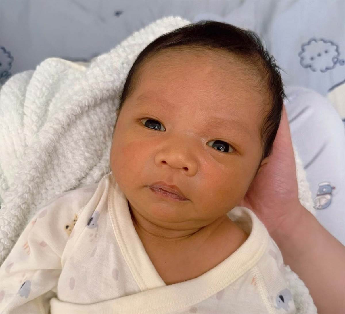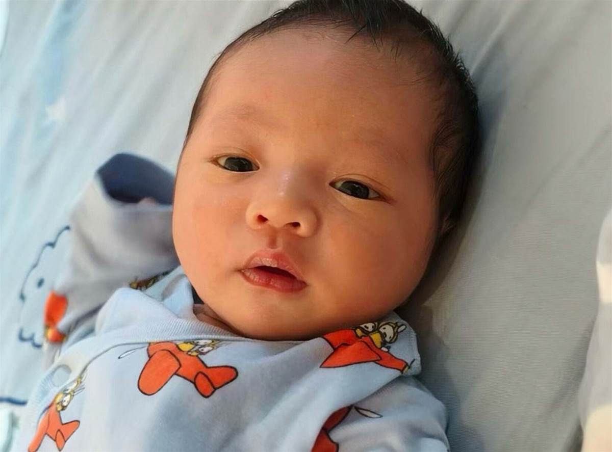 程美段第一時間,在社交媒體上分享了兒子蛋糕仔的正面照。寶寶整體的皮膚比較黑,但眼睛特別大也特別亮,一眼看上去炯炯有神,長得既像爸爸也像媽媽。