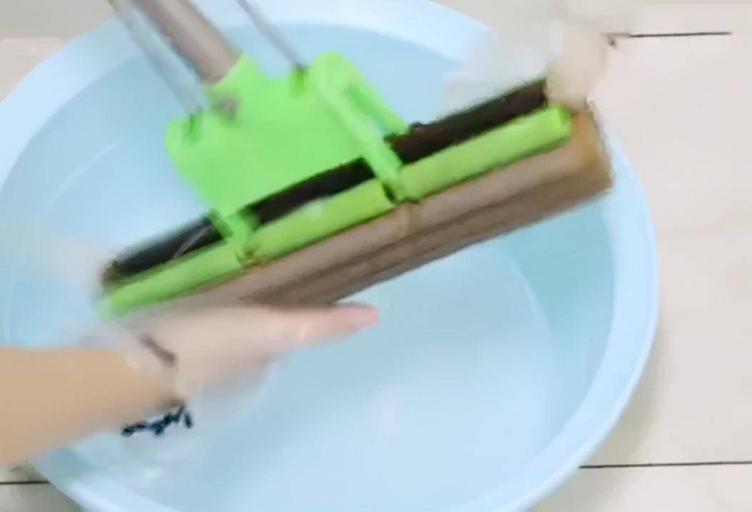 準備個一次性的手套,將其戴在手上去抓洗海綿,輕輕一抓海綿上便會有臟水溢出,一會功夫上面的污漬就全部抓下來了,最后將拖把沖洗一番就干干凈凈了。