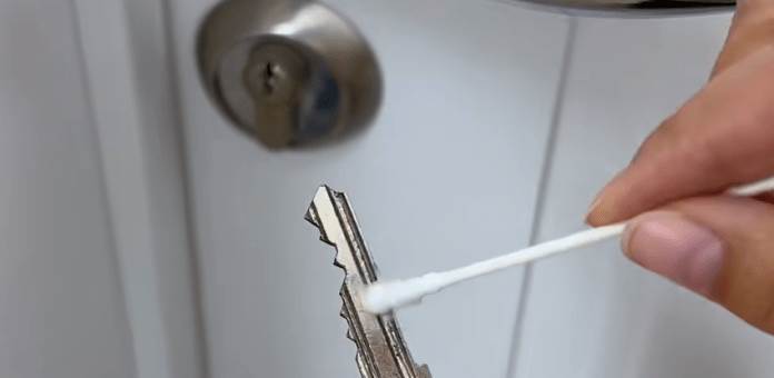 只需用棉簽取一點凡士林,均勻地塗抹在鑰匙軌道和鑰匙孔上,等待30秒後就可以使用鑰匙開鎖了。