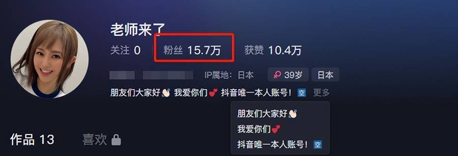 有細心的網友發現,蒼老師在直播間被關注到以后,短短的5分鐘就漲了5萬粉絲,速度非常快,能夠看出國人對她的喜愛。