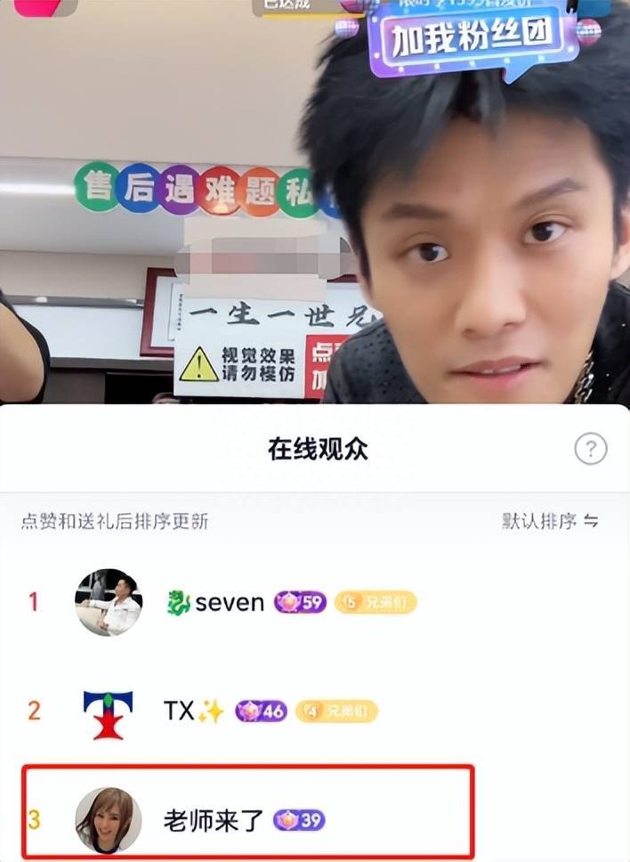 蒼老師在進入直播間以后,瘋狂給小楊哥刷禮物,一件刷了好多個某音一號,直接讓她沖到了榜三,因此也被小楊哥和直播間的觀眾注意到了,都對蒼老師表示熱烈歡迎。