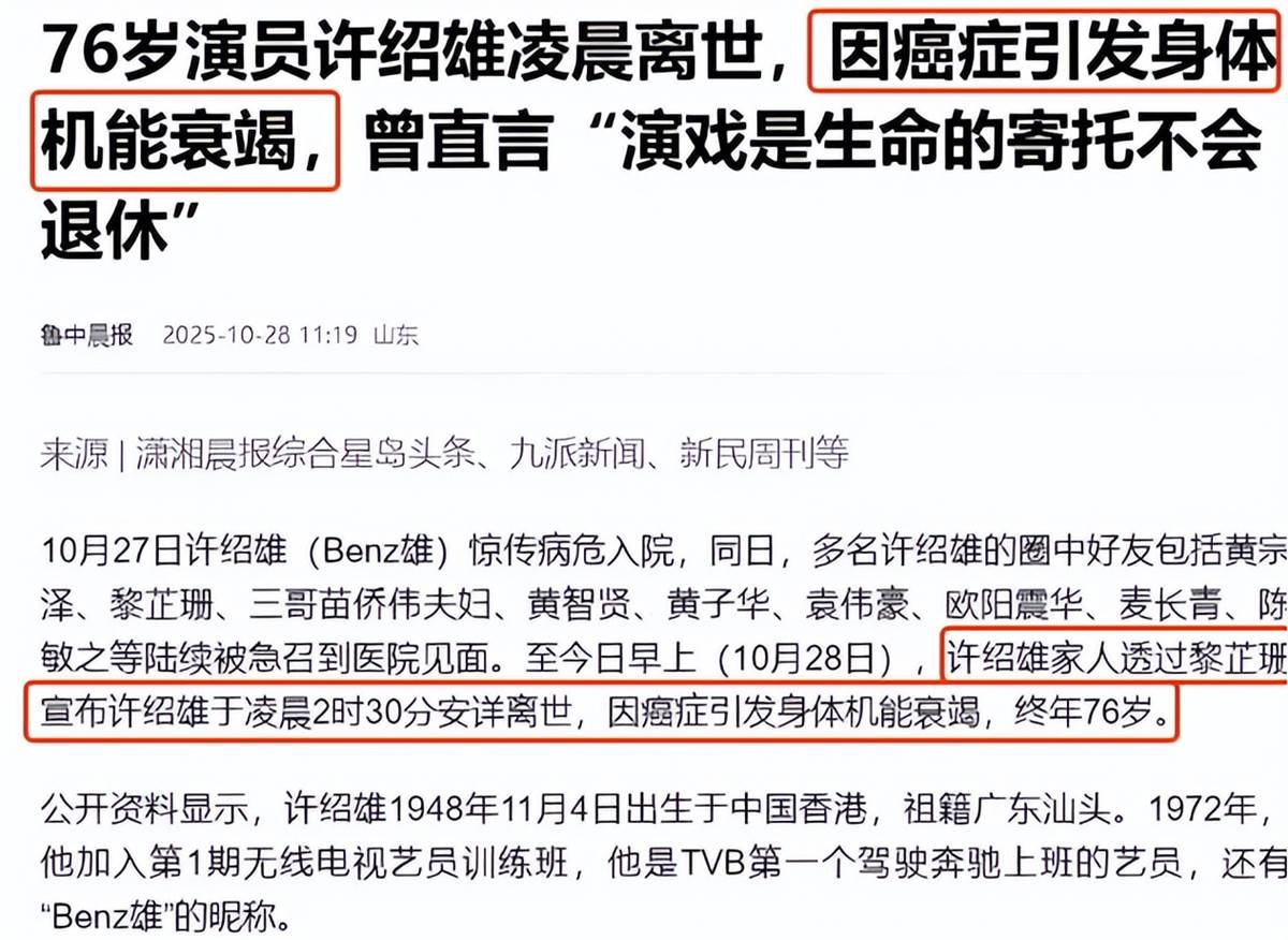 10月28日,港圈傳來一個震驚的消息:許紹雄因病離世,享年76歲。