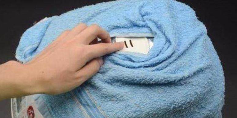 第三樣電器就是電飯煲了,電飯煲我們平時都用來煮飯,煮完飯之后它就會自動跳到這個保溫功能,但是大家所不知道的是保溫功能和煮飯功能一樣會消耗電量。我們這個時候可以拿一塊毛巾放在電飯煲上,讓毛巾堵住這個電飯煲的這個排氣孔,然后我們將這個電源插頭給它拔下來。我們堵住這個排氣孔可以防止這個熱量的散失,同樣可以起到一個保溫的功能。