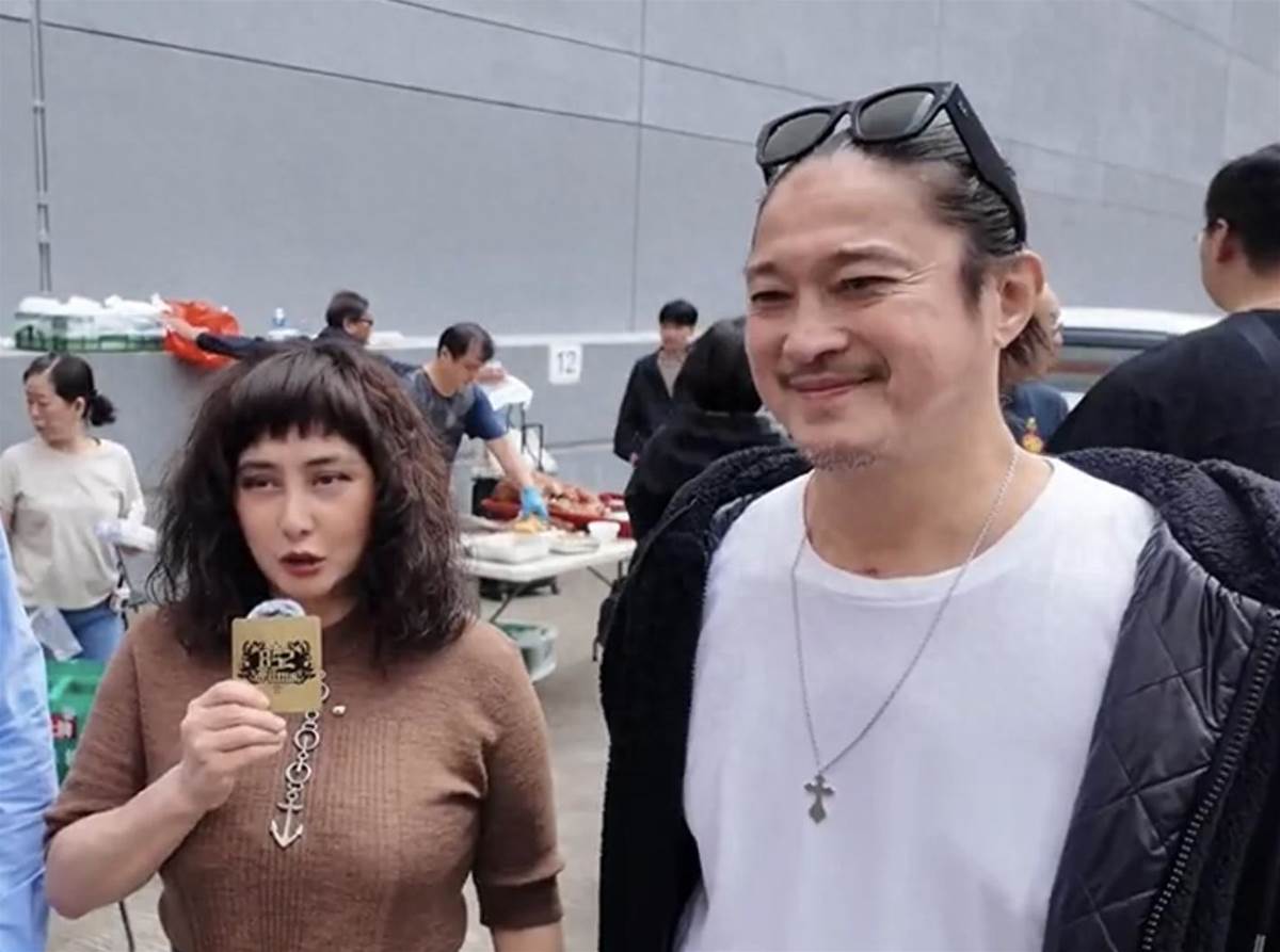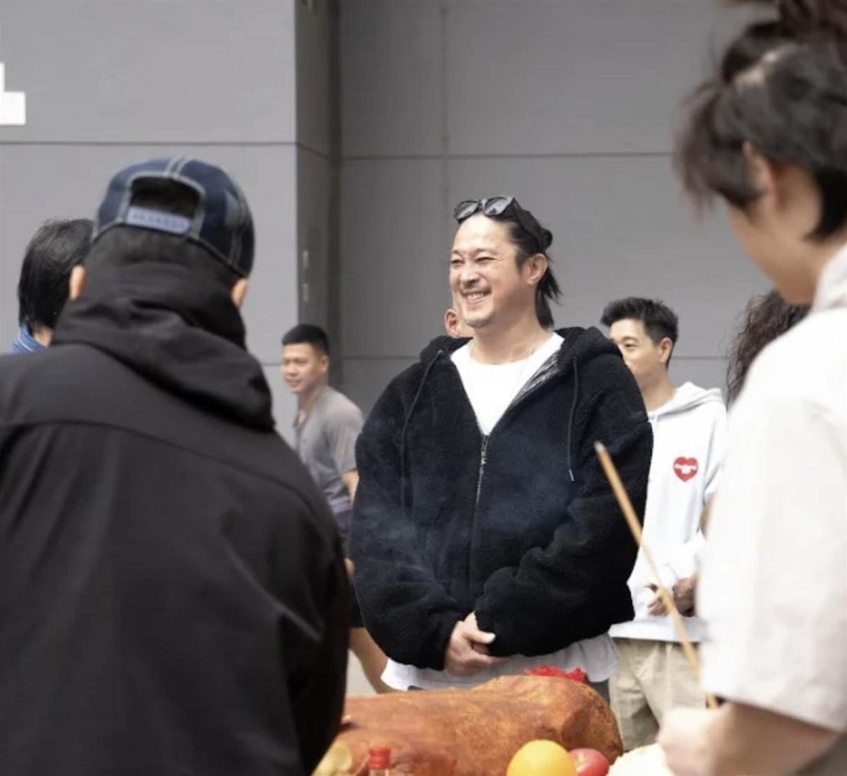 陳子聰是以電影監制的身份現身開鏡儀式。許久不見陳子聰,再見到他的時候,不只是精神奕奕,而且還胖了一圈,身材又恢復了昔日的魁梧,滿面紅光圓潤了不少。他的頭髮還是很長,還綁起了小辮子,又戴上了墨鏡,看起來還是頗為有型。當天天氣不算太冷,不過他還是穿了比較厚重的黑色外套,比起穿短袖的何超儀,他的穿著更顯得厚重,畢竟也是大病初愈,還是要注意保養。