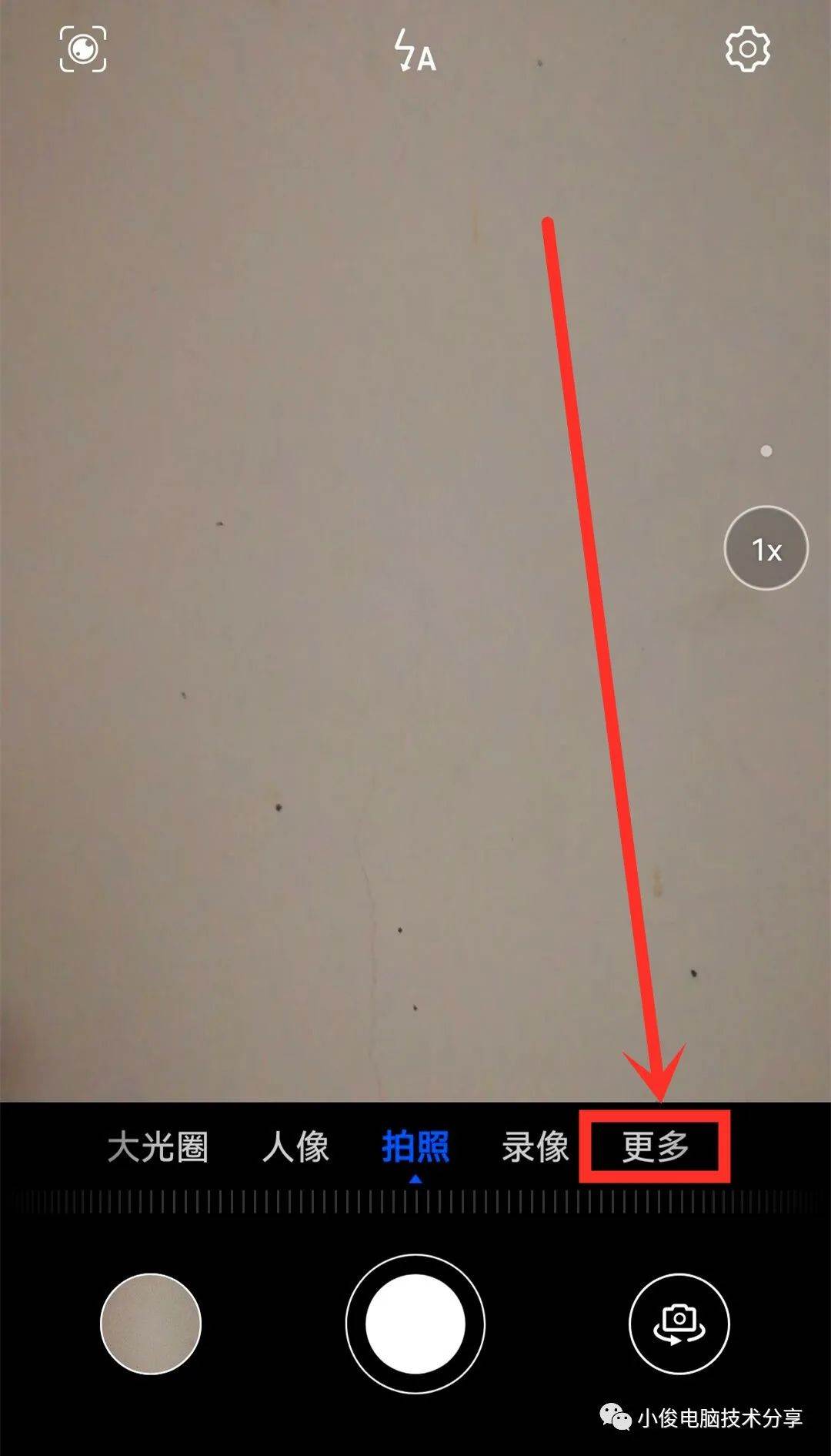 我們首先還是打開手機上的相機,打開相機之后,這個時候,我們可以看到在下方有一系列的功能菜單欄,那麼此時呢,我們點擊這個【更多】