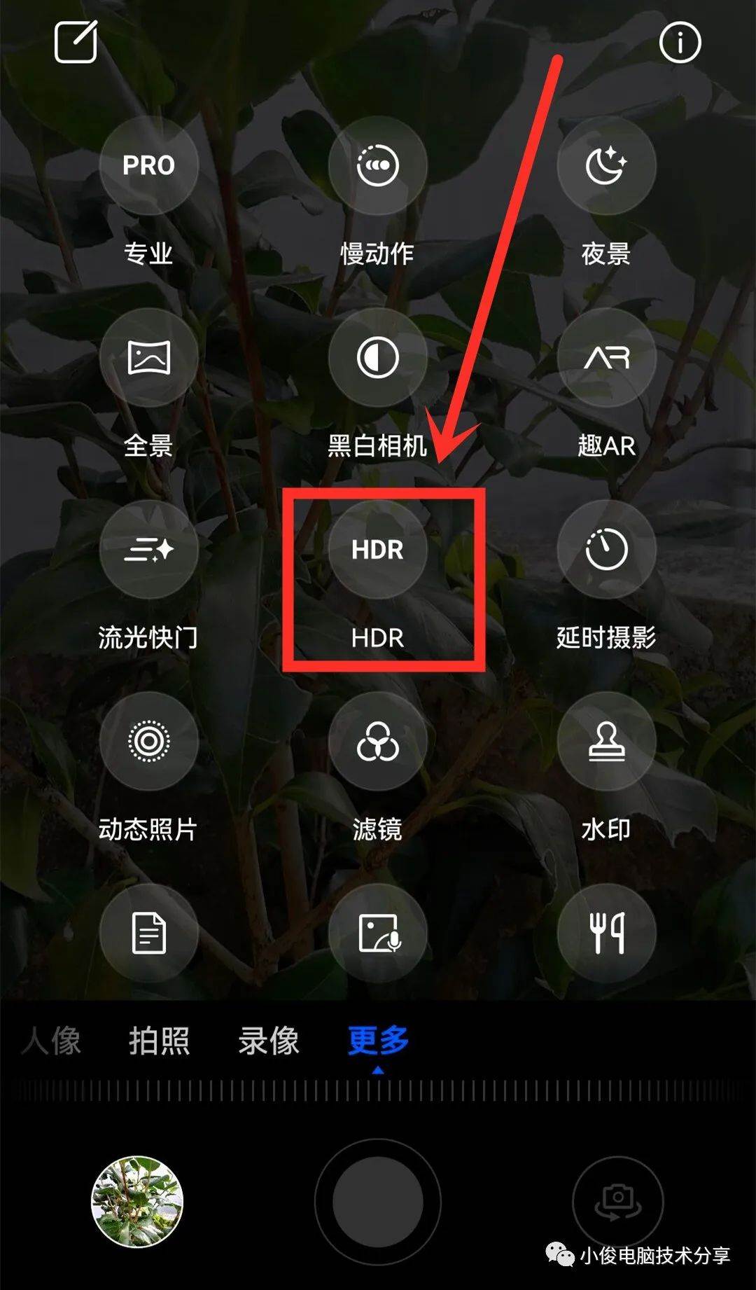 打開【更多】之后,就會進入到【更多功能】設置主頁面,在這里我們往下看,就可以看到一個【HDR】的開關,我們要找的就是它,之所以我們用手機拍出來的照片會非常不清晰,非常不美觀,其實就是由于沒有打開這個開關導致的,那麼此時我們點擊這個【HDR】