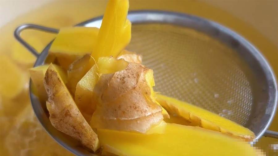 切好的生姜片直接放入鍋中,然后加入水熬煮十分鐘,這樣是為了去除生姜的辛辣味。這里我用的是之家中的本地小黃姜,味辛辣濃,汁水多,如果沒有,大家也可以用嫩姜,不建議用陳年老姜,老姜太辣,而且也沒有生姜的營養高。