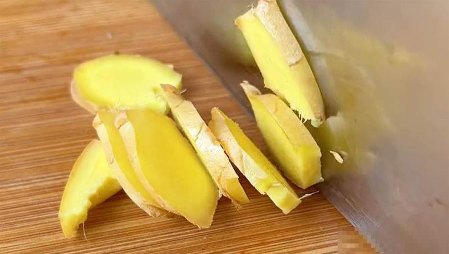 夾縫中洗不到的污垢,我們用小刀刮一刮,呆會兒放入清水中,把生姜再次清洗一遍就可以,這樣生姜吃起來就非常的干凈啦。有人會說了,直接去掉姜皮不就行了?其實姜皮屬于涼性,姜肉屬于熱性,兩者正好可以中和,所以最好是帶著姜皮清洗干凈,控水撈出,放在案板上切成薄片。