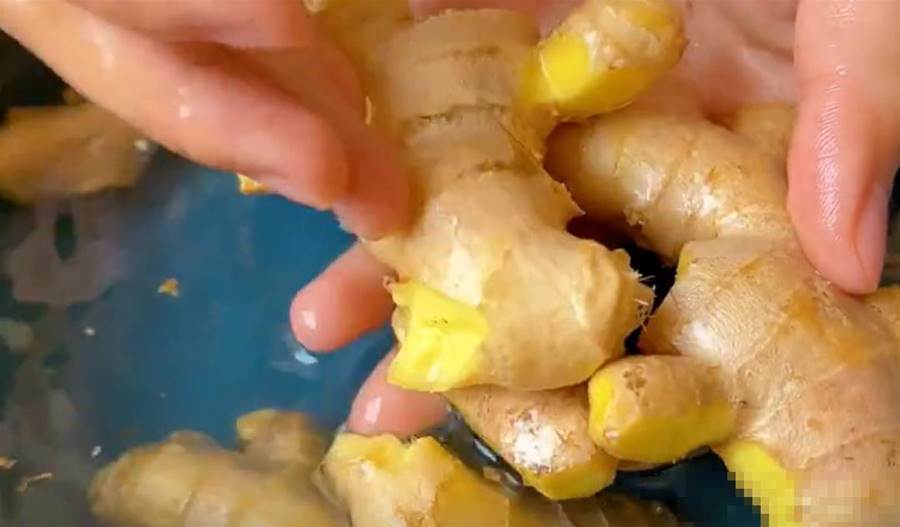 白糖我們先放在一邊,現在先來清洗生姜放入大碗中,先用鹽水把姜皮浸濕,再加入少許的食鹽,拿把姜皮一點點搓洗干凈,食鹽是顆粒性的,這樣搓洗有很好的摩擦性,再加上食鹽,可以消毒殺菌。不斷地搓細,可以把將皮表面的細菌污漬都帶走,一舉兩得,不但清洗起來更加輕松了,而且也更干凈了。