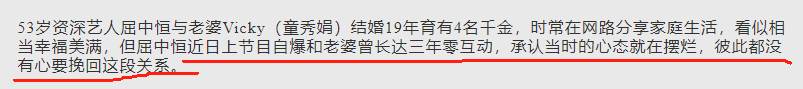 2021年屈中恒曾說過,Vicky每次吵架時就會提出離婚,他有次受不了直接答應,還提出分居后的規劃,才把Vicky嚇得不敢再提。