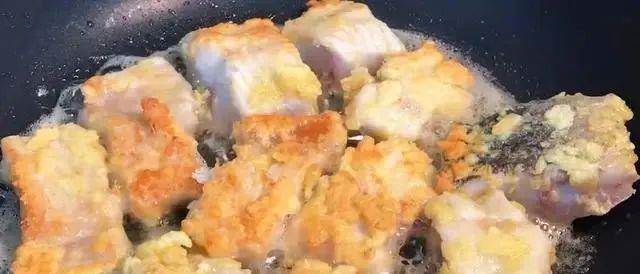 4.起一鍋,先將鍋燒熱,然后倒入適量的食用油,稍微量比平時炒菜多一些就可以了。油燒熱后把魚肉塊一塊一塊放入鍋里,先煎一下。等到一面煎成金黃色的時候,我們翻一面繼續煎,直到把兩面都煎成金黃色,我們就把魚肉塊盛出來,裝入盤里備用。