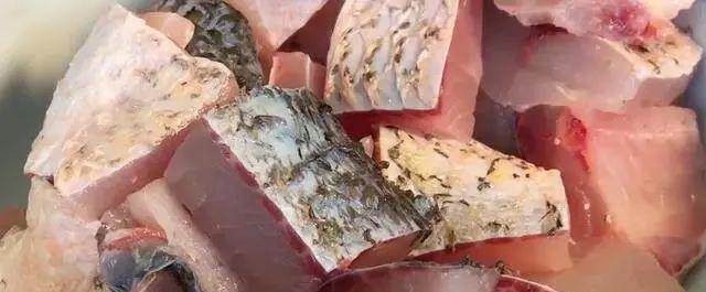 1.首先準備好所有的食材,買回家的草魚清洗干凈,然后用廚房紙巾把魚身上和肚子里面的水擦干。在魚頭和魚尾處各切一刀,然后從魚頭處扯出魚腥線,一邊扯一邊用刀拍打魚身,這樣會更容易一些。用剪刀把魚鰭剪掉,接著我們把魚頭切下來,可以用來煲魚頭湯,或者做剁椒魚頭哦。然后把魚肉切成差不多2個手指寬的段,再接著切成大塊,這樣做出來的魚肉會更容易入味。全部切好后,裝入一個大盆里面。切上一些姜絲,一些蔥段,放入碗里,加入適量的清水,用手捏出蔥姜汁。然后倒入魚肉塊里面,用手抓拌均勻,讓魚肉能夠充分吸收進去蔥姜汁,把魚肉腌制20分鐘。