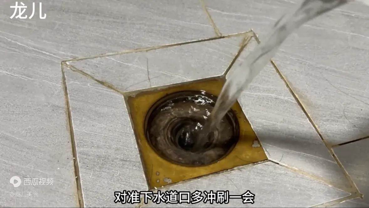 首先我們將下水道的地漏打開,然后往里面倒入一罐剛燒開的開水,對準下水道口多沖刷一會兒,這個開水的量大概在2000毫升。