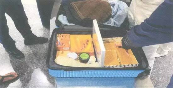 然而,就在過檢之際,航警局員察覺異常,與財政部關務署台北關查緝人員一同打開其行李箱進行檢查,最終查獲了重達4.9kg,至少價值2千萬台幣(約RM300萬)的海洛因磚。