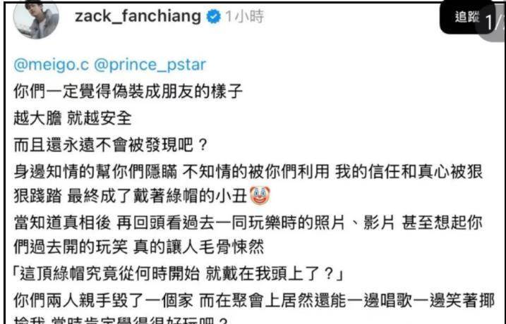曝出大瓜!藝人范姜彥豐錄視訊控訴妻子粿粿出軌,對象是棒棒堂成員王子(邱勝翊),火速引發網友關注。隨后女方很快回應,宣稱二人婚姻名存實亡,離婚已在進行中。
