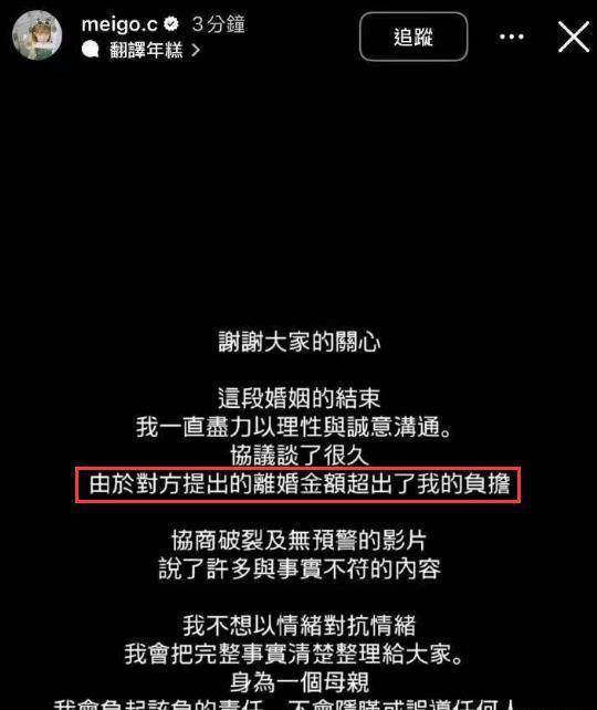 在男方曝光丑聞后,粿粿也通過社交平台回應,她透露自己和范姜彥豐的婚姻已結束,二人正在談判中,但男方提出的協商金額超過她的負擔。此外粿粿還表示,丈夫在視訊中透露的信息與事實不符,否認出軌。