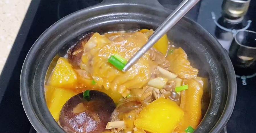 最后,將煲好的香菇土豆燉鴨肉盛出,淋上一些香油,以增加菜肴的香氣。將菜肴起鍋后,撒上一些切好的香蔥末,即可上桌享用。