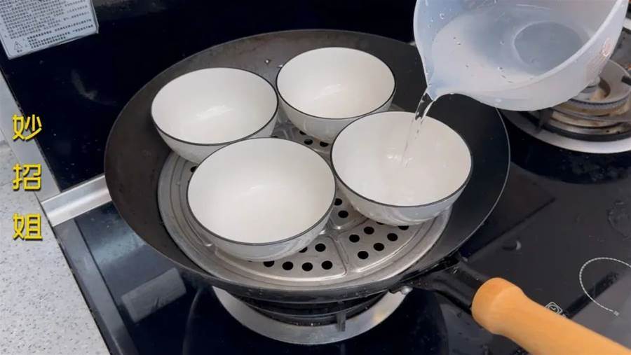 又嫩又完好的小妙招姐,方法非常簡單,首先我們在蒸屜上擺上一些碗,然后在每個碗中加入一點點清水