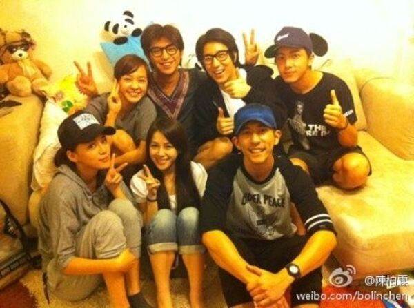 ▲照片中有陳柏霖、房祖名、坤達、修杰楷,以及陳意涵、王思平等人。(圖/翻攝陳柏霖微博/鏡週刊)