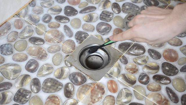 往衛生間地漏口擠一些自制的清潔液,用舊牙刷刷一刷地漏口堆積的油污和污漬。